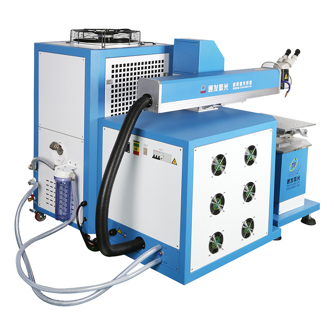 TFL-400Ⅲ型模具激光焊機是通發(fā)激光公司自主研發(fā)的一款大功率激光焊接機,采用通發(fā)自主研發(fā)的二代精密雙燈電源為燈泵浦驅(qū)動電源,配置觸摸屏,操作更方便。主機具備激光頭手搖升降與工作臺按鈕電動升降實現(xiàn)焊接不同厚度模具的激光焊加工。本款機型更適用于各類大功率、大面積激光修補的模具。由于激光功率大,同時可激光焊接鈹銅模具,鋁材模具或鋁材零件。在大面積激光修補模具時,可以使用更粗的焊絲,激光焊接效率大幅提升。